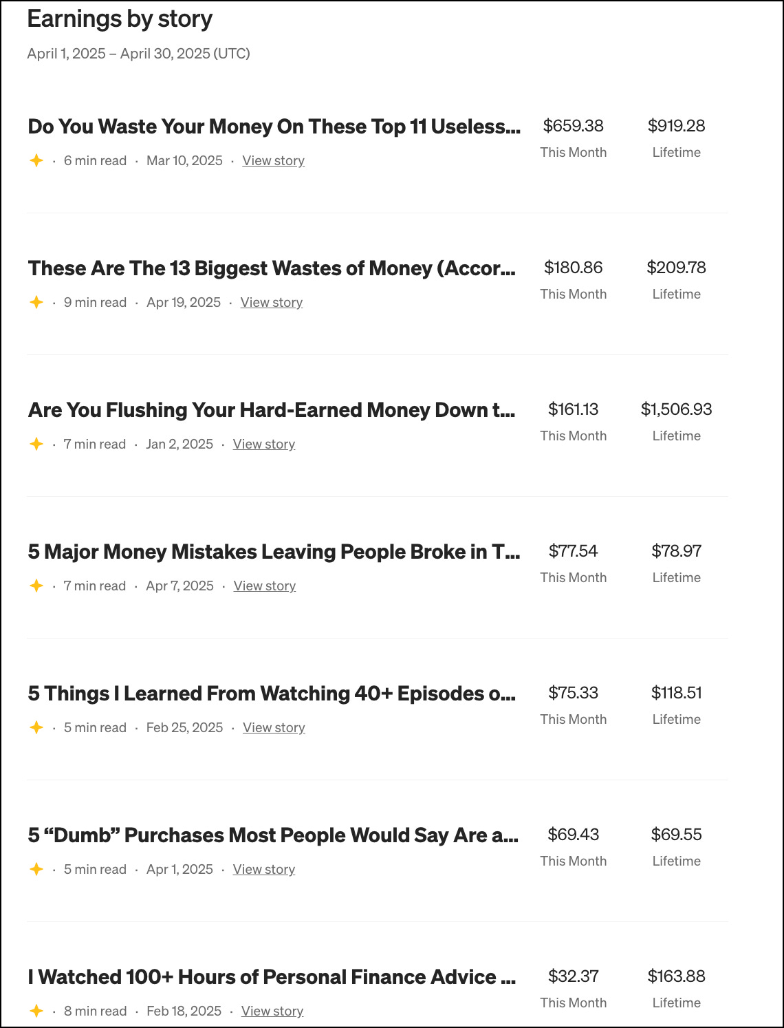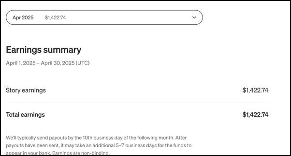 April was by far the best I’ve ever done on Medium. I finally hit my goal of making $1000 in a month. That’s an intention I set in July of 2023. Do you know how much I made that month?