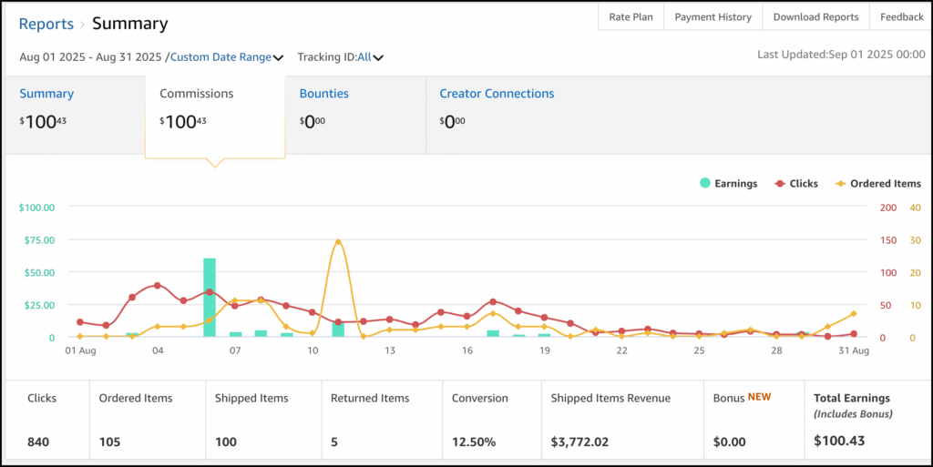 As I mentioned above, the book review article I wrote did very well on Medium, but it also helped boost my Amazon affiliate sales. I normally get a $10 or $11 gift card now and again, but this is what earnings looked like in August: