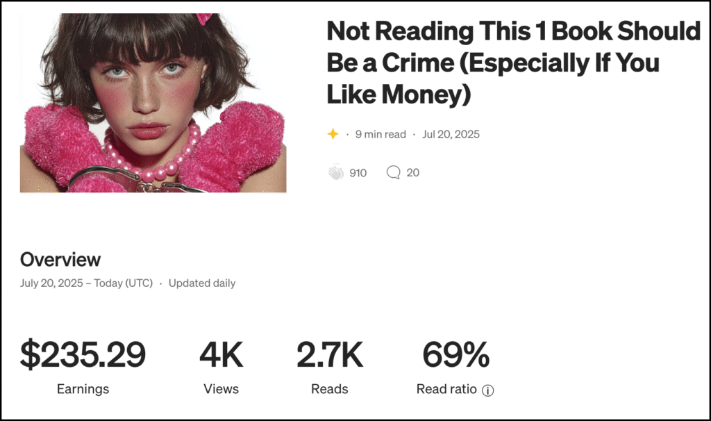 I’m most surprised about Not Reading This 1 Book Should Be a Crime (Especially If You Like Money). I never expected a book review to do as well as this.