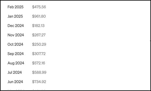 - February 2025 = $680.08