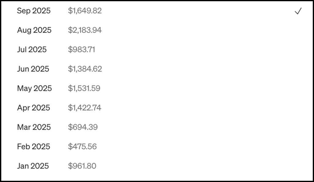 September marks my second highest earnings in a month, even though they went down over $500 from last month.